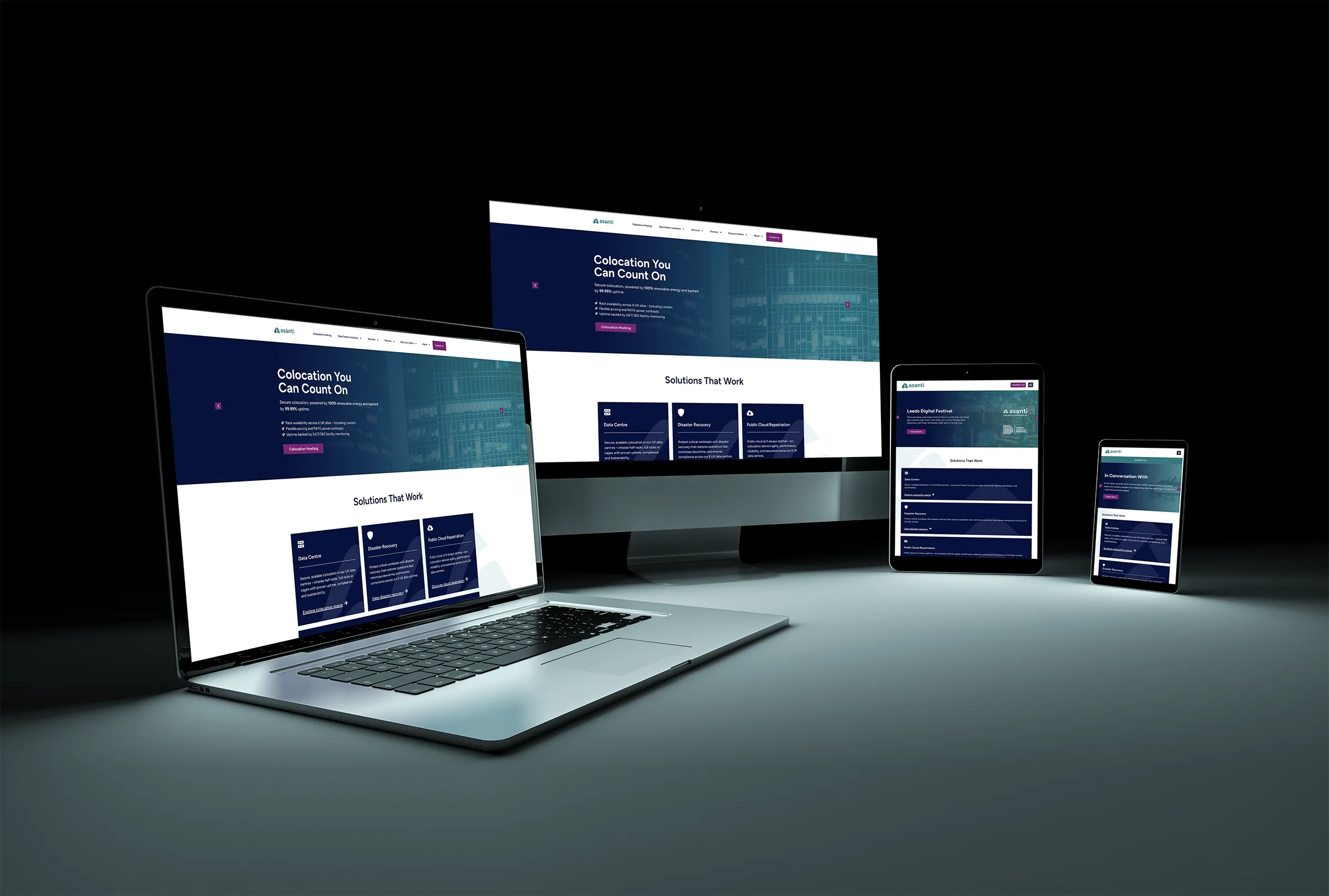 For Asanti, a leading UK provider of hosting and cloud storage solutions, we delivered a fully customised website designed to reflect their innovative services and meet their specific business goals. The project began with a collaborative discovery phase, ensuring we understood their audience and functional requirements before moving into wireframes and user-focused design concepts.